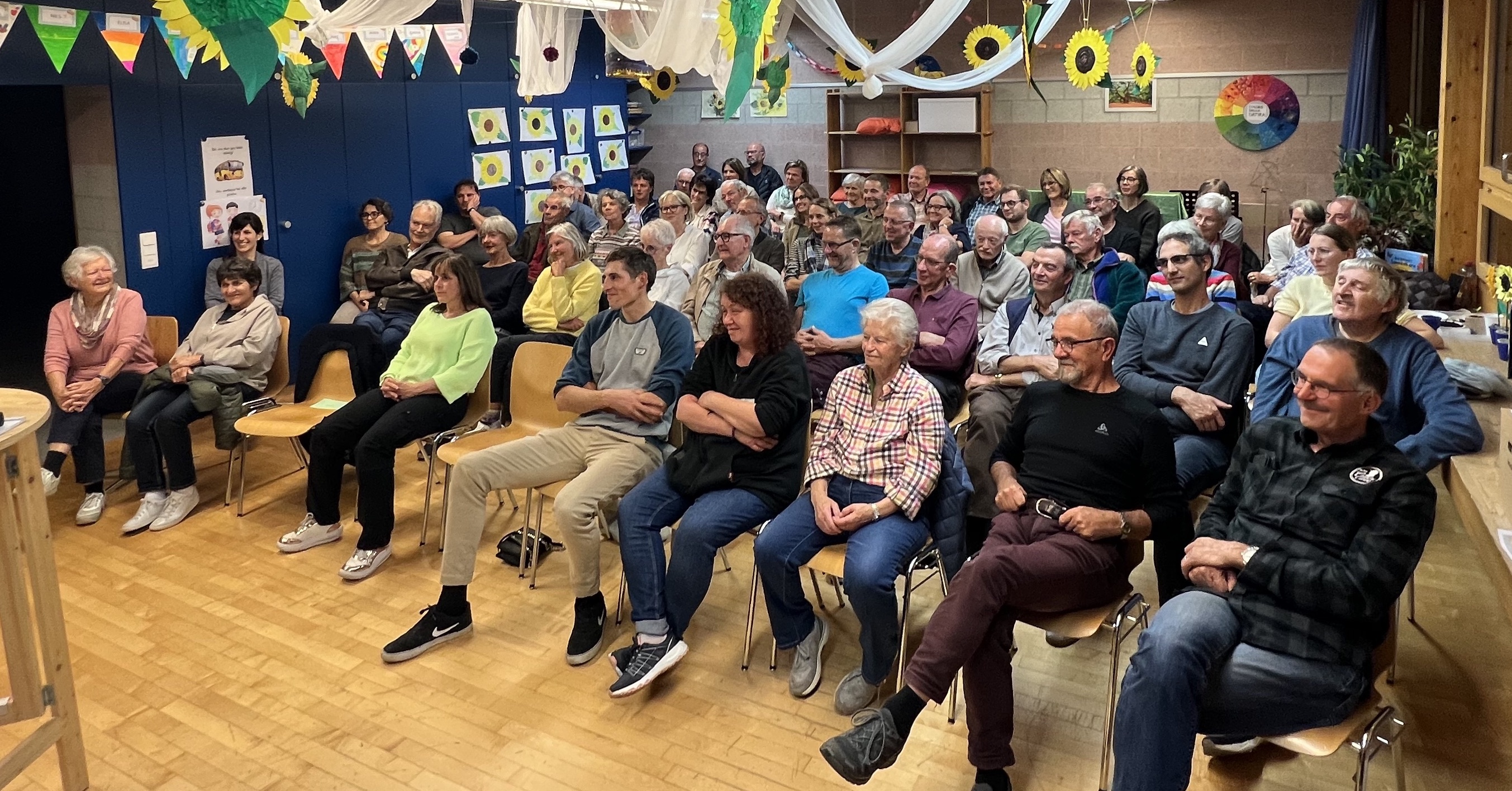 Das Publikum des Abends hat mit viel Interesse und mit einigem Schmunzeln zugehört. Der Abend war gezeichnet von Wertschätzung und auch von Freude, dass es den Dorfladen überhaupt (noch) gibt.